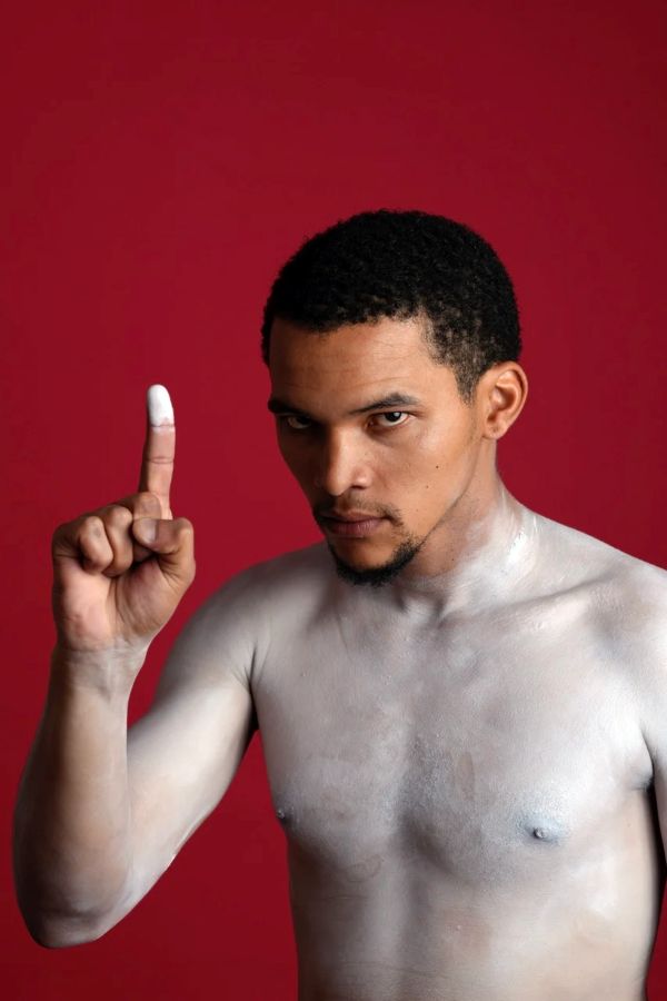 Ritsos noem iets wat vir ewig by my sal bly. Hy verwys na homself as ʼn “voetnota” vannie geskiedenis. Die rituele opvoering het in 1998, toe ek vie jaa out was, vi die audience dieselle ding gevra wat dit in 2025 van my vereis: my persoonlike memories. En oek my access tottie swart liggaam se kollektiewe bestaansgeskiedenis. Mens kan sê Breytenbach wou my naak sien. Soes hy doen met Ritsos: die kaal man oppie stage. Die kaal kallet man oppie stage. Die kaal kallet digter oppie stage. Cochrane trek sy swart cloak yt om sy naak liggaam bloot te stel. Sy liggaam is gepoeier of geverf, wat oek al, sy liggaam is wit verkleur. Basson laat Ritsos ees rontloop met ʼn groot plêstiekfallus om sy waist. As Boklied nie sin maak nie, of wil sin maak nie, dan is Ritsos maa net ʼn bra met ʼn exaggerated kunspenis. Assit net sin maak binne die fallus se geskiedenis as ’n prop vannie ou Griekse komedie, dan is Ritsos net die grap. En die historiese tienwoordaggyt van kallet karakters in Afrikaanse literatuur funksioneer as scaffolding vi die komedietegniek. Voo kallets gangsters was, was hulle ees die jolly ennie happy-go-lucky. Die funny dronk uncle en die grapjas vannie plaas. Wannee Isis die fallus van Ritsos se liggaam afhaal, is hy totaal naak virrie res vannie play. Die realityt is dat Basson dittie doen om humorous te wiesie. My eeste indruk wassie comedy nie, maa vulnerability. Cochrane portray vi Ritsos met daai vurige dringentyt en passie wat activism verg. Daai’s by kere oek ʼn kwesbaarryt wat skil vanaf Ritsos se dialoog. Dit is ʼn kwesbaarryt, ʼn tipe kaalmaak wat mens goet ken. Soes Ritsos wat binne die incipit minute van Boklied alles blootstel, wôt dieselle vereis van swart skrywers ten einde toegang te kry tot spasies soes Boklied. Ek doen dit, byvoorbeelt, nou selfs in die review.