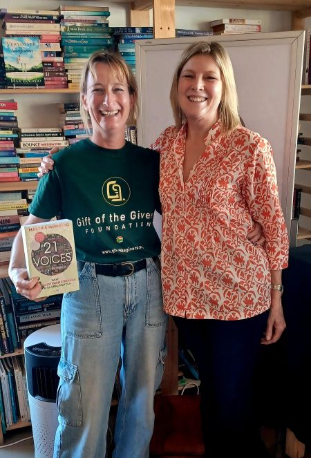 Sarah Oosthuizen van Gift of the Givers en Marthie Momberg, skrywer van 21 Voices (foto: Jean Oosthuizen)