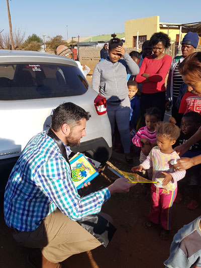 Ek werk al die afgelope agt jaar by die Connie Mulder Sentrum vir multigestremde volwassenes. Een van die inwoners wat self geen geletterdheid het nie en dit ook nooit sal kan bekom nie, het aangedring om saam met my die boeke te gaan uitdeel.