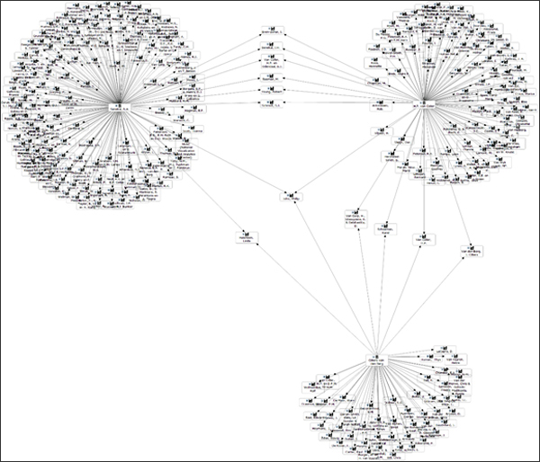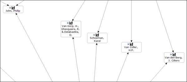 In die groeperings hier bo is Burgert Senekal links bo, Hennie van Coller regs bo, en Cilliers van den Berg onder. Soos in hierdie sosiogram gesien kan word, is hier min oorvleueling van bronne, en vergroting dui aan met watter bron daar oorvleuel is:
