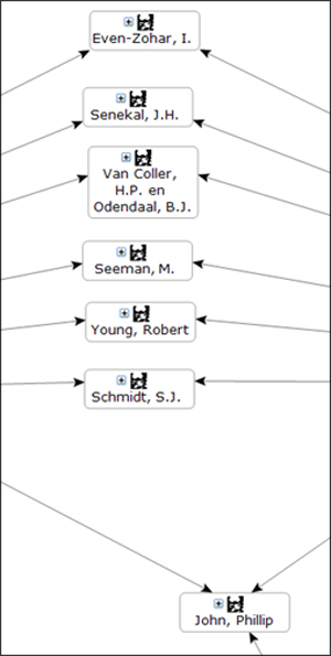 Dit wil voorkom of bogenoemde persepsie nie deur die ontleding ondersteun kan word nie: alhoewel Van Coller, Van den Berg en Senekal aan dieselfde universiteit verbonde is, en laasgenoemde twee onder Van Coller studeer het, is daar min oorvleueling ten opsigte van die skrywers wat as bronne gebruik word. Studie aan ’n sekere universiteit, en verbondenheid daaraan daarna, beteken dus nie noodwendig dat dieselfde invloede ter sprake sal wees nie. Neem in hierdie geval ook in ag dat dié drie skrywers gereeld binne soortgelyke teoretiese raamwerke werk: Senekal én Van Coller het byvoorbeeld binne die sisteemteorie gepubliseer (vandaar die oorvleueling ten opsigte van Even-Zohar en Schmidt), en albeihet oor vervreemdingsteorie geskryf (vandaar die oorvleueling ten opsigte van Seeman). Van den Berg en Van Coller het albeibinne traumateorie geskryf (vandaar hul oorvleueling ten opsigte van Philip John en Van den Berg se eie werk). Die oorvleueling is egter slegs in terme van seminale skrywers, nie ’n groot aantal skrywersnie, wat beteken dat navorsers steeds bronne raadpleeg wat baie verskil, selfs al oorvleuel die velde waarbinne hulle skryf.