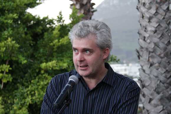 Eben Venter se manuskrip Wolf, wolf was op die kortlys vir die groot prys van R200 000. Hier is Eben saam met uitgewer Riana Barnard.. |