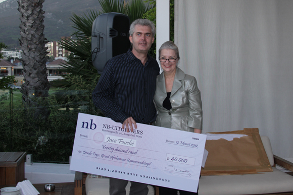Ingrid Winterbach ontvang haar tjek van Eloise Wessels. |