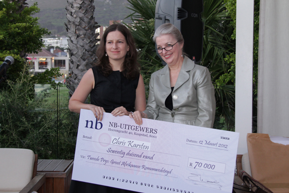 Ingrid Winterbach het die groot prys van R200 000 gewen vir haar manuskrip Die aanspraak van lewende wesens. Chris Karsten was tweede met 'n Man van min belang en Jaco Fouché het die derde plek ingeneem met Liefste Lena. Die debuutprys is aan Carié Maas toegeken vir haar manuskrip, Koljander.