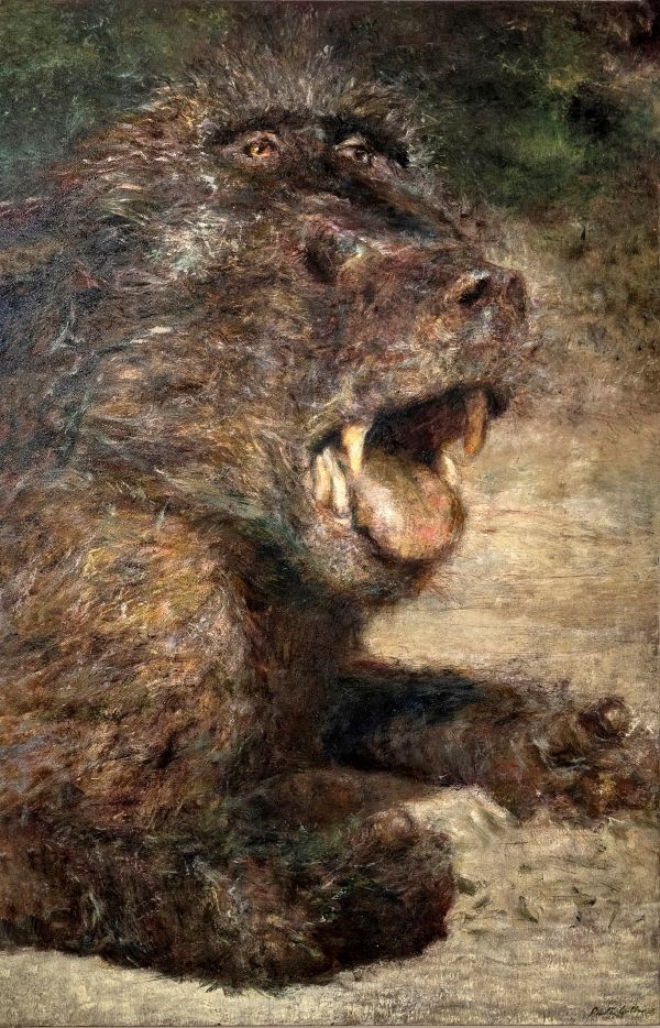 The exhibition culminates in The soul of the ape, a monumental oil portrait of a chacma baboon. This soulful and contemplative piece acts as a mirror, reflecting humanity’s inseparable connection to nature and our potential for both destruction and redemption. It serves as a fitting conclusion to a sacred journey that began with the heyoka and unfolded through landscapes, wildlife and poignant symbols of environmental fragility.