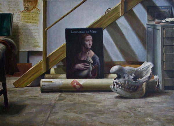 Leonardo and rhino skull in