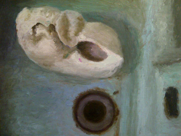 Stillewe met walvis-oor en groen emalje-wasbak