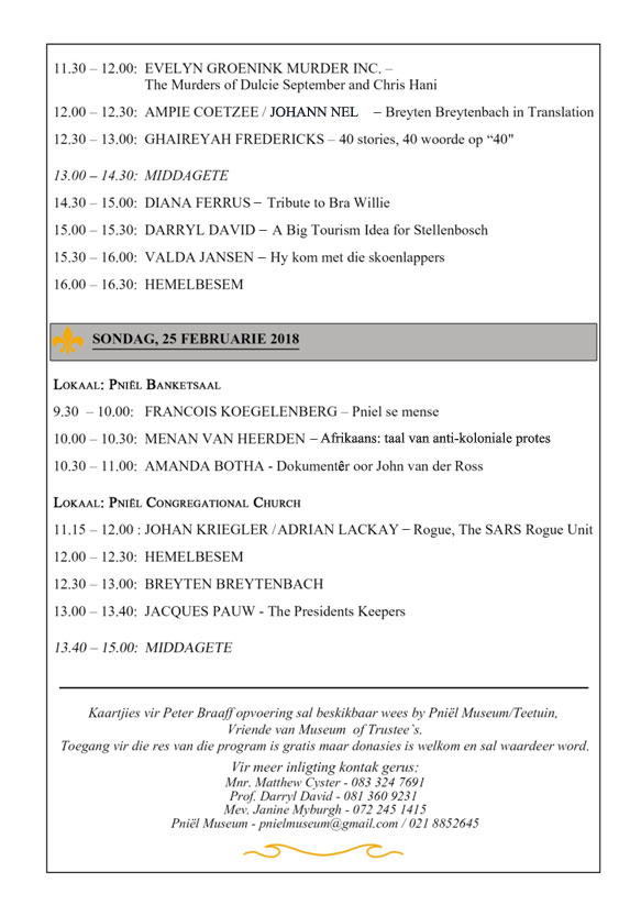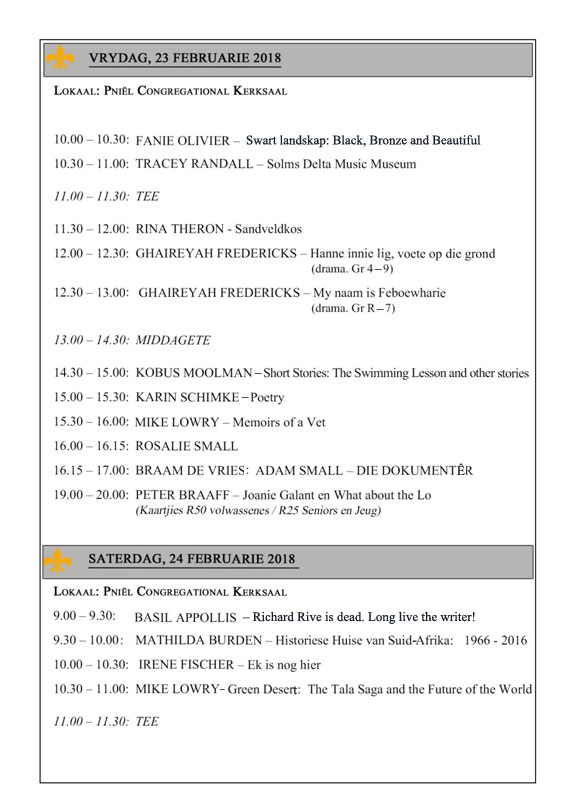 LitNet plaas hiermee die Adam Small-fees se program in die formaat soos wat ons dit van Darryl David ontvang het – kontak Darryl David direk in verband met praktiese vrae en reëlings. Darryl se adres is: Davidd@ukzn.ac.za