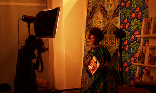 Funky photo booth: Event manager Poema Jones poses for a photo. Guests could pose with copies of the magazine. Check out the “Alternative Covers” album on their Facebook page.
