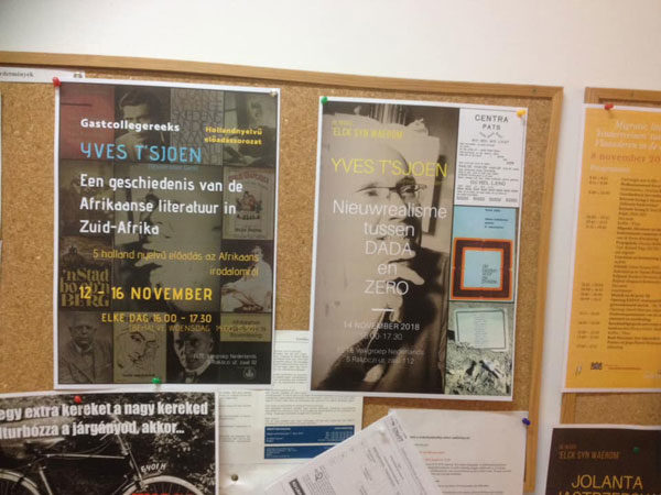 Na een korte passage aan de gereformeerde Károli Gáspár Universiteit, met een gastcollege over het esthetische en politiek-ideologische paradigma van Sestig (april 2018), kreeg ik in de week van 12 tot 16 november de gelegenheid bij de buren van de Eötvös Loránd Universiteit (ELTE) een blokcursus aan te bieden. ELTE is een van de oudste universiteiten van Centraal-Europa, met in totaal dertigduizend studenten en een dynamische groep van enthousiaste, begeesterende docenten Nederlands. Een groep van vijftien studenten, derdejaars, masters en ook enkele studenten met gewoonweg interesse, volgde een week lang een lessenreeks met de focus op de Afrikaanse literatuurgeschiedenis. Op instigatie van Orsolya Réthelyi, hoofd van het departement Nederlands, en in de context van het onlangs afgesloten Erasmus+ contract tussen ELTE en Universiteit Gent, is een wandeling ondernomen met vijf haltes doorheen de Afrikaanse letteren.