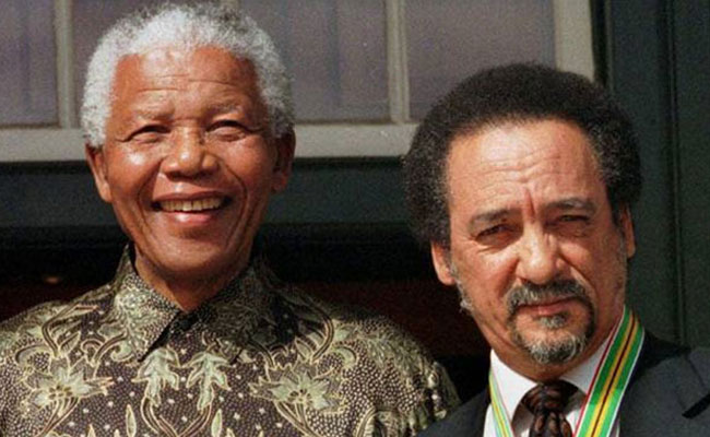 Nelson Mandela en Jakes Gerwel (fotobron: http://www.independent.co.uk/news/obituaries/professor-jakes-gerwel-mandelas-unsung-hero-8374234.html)