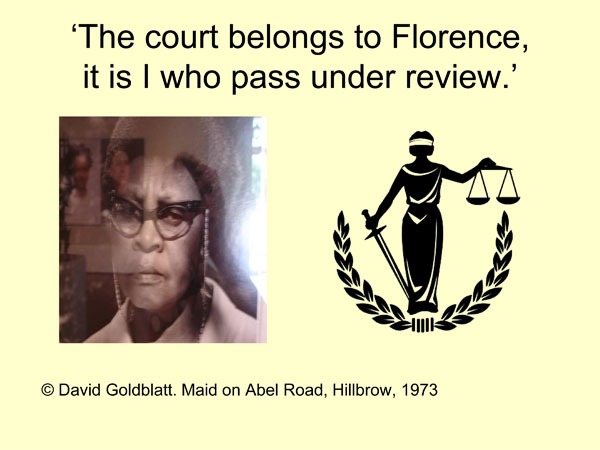 Mrs Curren zegt in de roman: "The court belongs to Florence, it is I who pass under review."