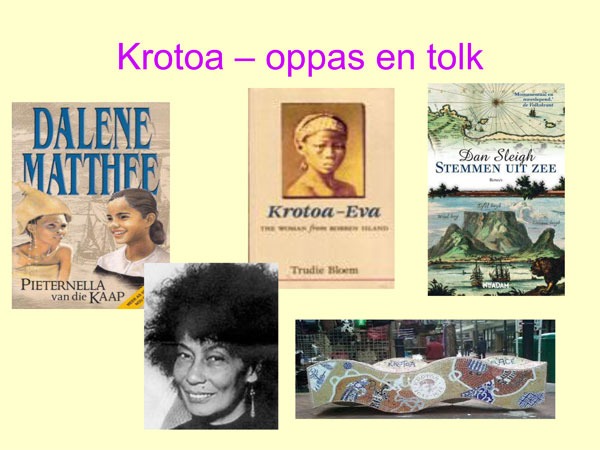 In mijn oratie in 2003 schetste ik de verschuivende beeldvorming rondom Krotoa: precies in die tijd werden fascinerende nieuwe verbeeldingrijke beelden van Krotoa geconstrueerd. Het nummer "Krotoa" door de jazzpianist Dollar Brand/Addullah Ibrahim bestond al sinds 1969. Krotoa werd in 2003 opmerkelijk vaak als oermoeder geclaimed door Zuid-Afrikanen die voorheen in alle toonaarden ontkenden dat een donkere vrouw deel kon uitmaken van hun genealogie. Een fascinerende geschiedenis: van Krotoa de nanny tot Krotoa de oma.