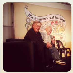 Hi Naomi! Jip, dit is beslis ’n besonderse werk – en ek is baie bevoorreg om te kan doen wat ek doen. ’n Mens ontmoet ongelooflike mense (en soms ’n paar vreemdes en, wel, nares ...). Soos vandag: Ek het vir die heel eerste keer vir PG du Plessis van aangesig tot aangesig ontmoet. En ek’s aangesê om my Engelse kant dood te slaan (grinnik), en sommer op die plaas te kom kuier. Vir iemand wat so ’n groot aanhanger is as ek, is dit pure poeding. En gisteraand het ek myself bankrot gekoop aan kuns tydens die kunssafari: Craig Müller se "Dubiously benevolent hospital dirigible". ’n Mens leer soveel meer van jouself deur in aanraking te kom met ander mense se denkwyses en hulle skeppings, of dit nou musiek, kuns, digkuns, prosa of teater is - en of dit sommer ’n gesprek met die klankman van die gratis verhoog is.