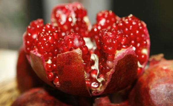 “Die rooi-pit-granaat skiet sy bloedrooi pitte uit teen rypwordtyd”
