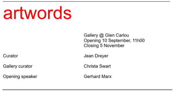 Sited on both sides of a boundary or threshold between the verbal and visual, words speak to the connections between what one sees and says. The emergent entanglements are dynamic and fluid.
