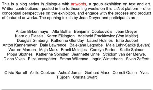 How does being adjacent as equals (word and image) evolve into a layering, a simultaneity, a mutual influencing? How does the recontextualisation of word and image reflect on belonging? Or does an art word belong to an in-between space? Does the reader/viewer become complicit in the act of saying? We enter and are held.