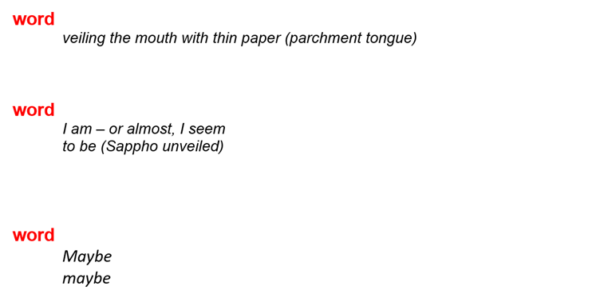 Open-ended, art words form a polyvocal image that touches one through the eyes, voice and meaning. They beckon the visual, they are a field of intensities.