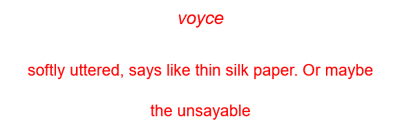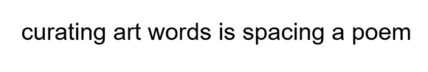 Art words move from one voice to someone else’s, somewhat erased, raised or resaid. They are there for one to see, to be seen as they linger and pass the viewing eye along the way the text gestures, posits and positions.