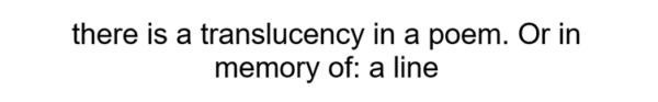 This shatters divisions and softens genre distinctions, allowing for an aesthetic that stretches across language and art. There is a laying bare, a trans-appearance, a transparency. Seeing is saying.