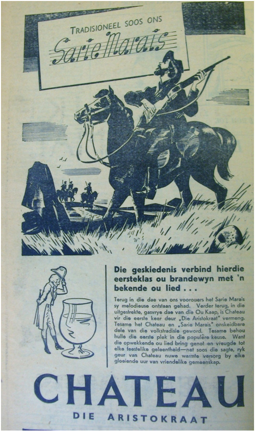 Grant Olwage (2004:2) bespreek in sy essay “Black musicality in colonial South Africa” die troop in koloniale sendingliteratuur wat beweer dat swart sangers nie musiek van hulle eie het nie. Olwage redeneer dat hierdie troop meer te make het met opvattings oor musikale geletterdheid en kanonisering as wat dit dui op die afwesigheid van ’n musikale erfenis. Die “probleem” was nie swart sangers se gebrek aan musiek nie, maar die feit dat orale kulture min bestaansreg binne die geletterde koloniale wêreld gehad het. Dit is om hierdie rede dat swart musikante nie, uit ’n Westerse oogpunt, as musikaal geletterd beskou kon word nie. Daarom kom Olwage tot die gevolgtrekking: “Getting converts to read music would finally give them music.” Daar is baie ooreenkomste tussen koloniale beskouings van swart musikante se “gebrek aan musiek” en die sogenaamde afwesigheid van sanglus by Afrikaners. Behalwe dat beide op die rassedimensie van idees oor musikaliteit dui, word musikale geletterdheid in beide gevalle as simbool van Westerse beskawing veronderstel – ’n leë simbool in die geval van ’n advertensie (Figuur B) vir die Suid-Afrikaanse brandewyn Chateau (Anon. 1938h), wat in 1938 wyd in die Afrikaanse pers gepubliseer is. ![]() Figuur B. Advertensie vir Chateau-brandewyn. Die Brandwag, 18 November, bl. 40. In hierdie voorbeeld word die kyker gekonfronteer met drie simbole waarvan die samehang uiters opportunisties is: “die Franse aristokraat” (herkenbaar in kleredrag en gebaar), ’n oënskynlik singende ruiter (wat “boer” moet simboliseer, maar meer herinner aan ’n cowboy), en die liedjie wat as prikkel gebruik word, “Sarie Marais” (hier voorgestel in die vorm van betekenislose note op ’n notebalk). Die advertensie se vergelykings tussen Chateau en “Sarie Marais” is onsinnig: beide is onskeidbaar deel van die “volkstradisie”, beide is “populêre keuses” en beide bring “genot en vreugde tot elke feestelike geleentheid”. Dit is onsinnig omdat die juiste musikale ekwivalent vir ’n Franse aristokraat tog sekerlik die musiek van die Franse aristokrasie is en nie ’n populêre Afrikaanse lied van Amerikaanse oorsprong nie. Korrektheid is egter nie waaroor dit in advertensies gaan nie. Wat die gebruik van faux musieknotasie in hierdie voorbeeld interessant maak, is dat dit elitistiese idees oor musikale geletterdheid gebruik om tot musikaal ongeletterde lesers te spreek. As die toonhoogtes korrek genoteer was, sou die gemiddelde leser nie die verband met “Sarie Marais” kon trek nie. Faux musieknotasie kan net indeksaal verstaan word. Aan die een kant illustreer dit bloot, soos die swewende musieknootjies in strokiesprente, die teenwoordigheid van musiek. Maar op ’n ander vlak is dit een van die meganismes waardeur die advertensie geloofwaardigheid behou te midde van ’n uiters ongeloofwaardige konteks. Musieknotasie kan die gedwonge analogie tussen die Afrikaner en die Franse aristokrasie dra op ’n manier waarop “Sarie Marais”, die liedjie, nie kan nie. Musieknotasie word hier ingespan as ’n teken van Westerse beskawing en deur hierdie teken word dit moontlik vir ’n singende, brandewyn-drinkende leserskorps om ’n verbintenis met Franse aristokrate te verbeel. |