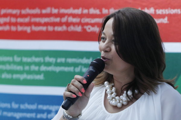 Sy het het egter geen doekies omgedraai nie: nadat sy lof betuig aan die aanwesiges, skiet sy ook berekende woorde van kritiek op onderwysers en die amptenary wat nie hulle samewerking gee nie.