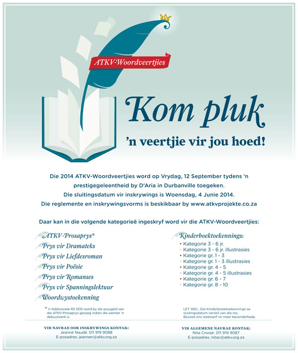 Die reglemente en inskrywingsvorms is beskikbaar by http://atkv.org.za/af/kunste/woordveertjies.