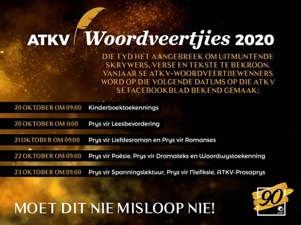 Die ATKV-Woordveertjies bekroon jaarliks uitsonderlike prestasie rondom die Afrikaanse woord. Wenners sal vanaf 19-23 Oktober op die ATKV se Facebookblad bekend gemaak word.