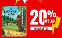 2022-08-09"Elke dag, vir 31 dae, gee ons 20% afslag op ’n nuwe Afrikaanse titel. Die boek vir 10 Augustus is Die Goorgomgaai deur Julia Donaldson. Philip de Vos is verantwoordelik vir die heerlike Afrikaans."