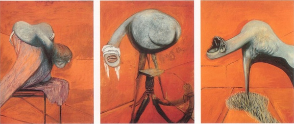 Figuur 15. Francis Bacon (1909–1992), Drie studies vir figure by die voet van ‘n kruisiging (1944). Olie op karton, drie panele, 95 x 73,5 cm elk. Londen: Tate Britain. http://www.tate.org.uk (9 November 2013 geraadpleeg). |