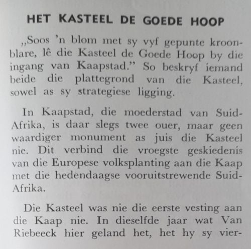 Ek dink die saadjies vir my belangstelling in navorsing en skryfwerk is aanvanklik onder andere deur my destydse standerd 9- (graad 11-) geskiedenisonderwyser gesaai wat voorgestel het dat ek ’n artikel vir die skool se jaarblad skryf met die titel “Het Kasteel De Goede Hoop”. Dit was ’n lekker uitdaging, omdat my onderwyser van mening was dat ek oor die vaardighede beskik om oor ’n historiese gebeurtenis navorsing te doen.