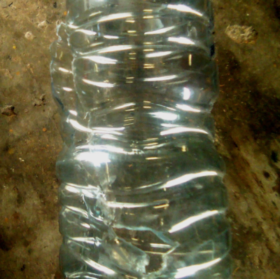 Bo: Die onderkant van die bottel, wat nogal besonder hard is (maar relatief tot byvoorbeeld glas elasties is), het stervormig gebars.