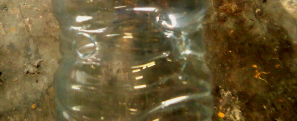 Bo: Selfs die derde botteltjie wys duidelike defekte. Hierdie bottel is gedefekteer nadat die punt reeds deur sowat 45 cm digte watermassa beweeg het.