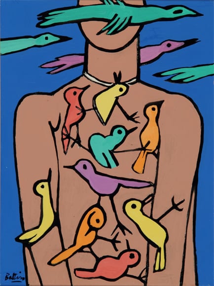 Walter Whall Battiss was one of South Africa’s most innovative and rightly most celebrated artists. His jocular personality combined fine disregard for the hypocrisy of the South African cultural and political establishment with a passionate commitment to free thought, which throughout his career enabled him to exercise his artistic talents without conforming to any expectations. This gentle anarchistic element in his disposition resulted in the creation of the imaginary Fook island in the middle of Pretoria with all the necessary trapping of an idiosyncratic language, currency, travel documentation and postage stamps that were put to good effect by Battiss where ever he could. His artistic oeuvre was multifaceted and seemed to draw as much from the celebrated rock paintings Battiss became intimately acquainted with, as it did from contemporaries such as Picasso and various exponents of the pop art movement he experienced whilst travelling throughout Europe and the Unites States..