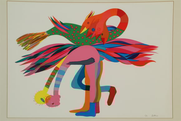 5. Bird Making a Nest on a Man’s Back, n.d., screenprint, 430 x 620 mm