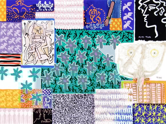6. Polynesia, 1981, oil and mixed media collage on canvas, 600 x 800 mm