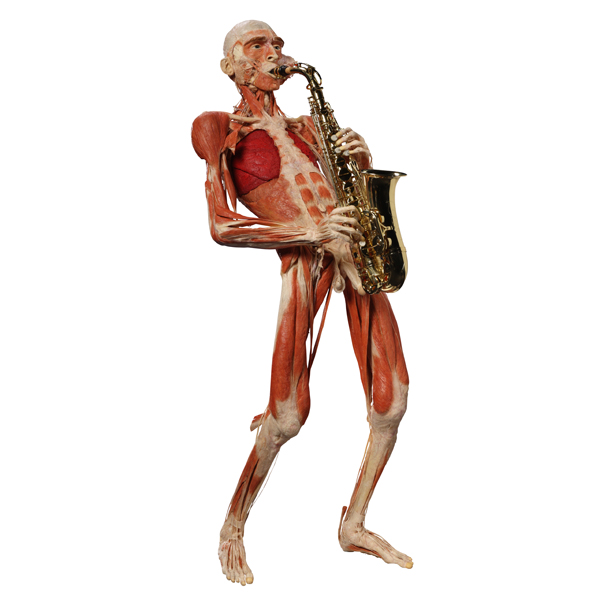 Yet, in Von Hagens’s defence, he does not claim his plastinates to be art, but rather displays that are scientific and educational. There is no doubt that comparing actual human lungs of smokers and non-smokers, the livers of alcoholics and non-alcoholics and placards with descriptions of eye disease and dementia serve some educational purpose in informing the general public about important health issues. Indeed, Von Hagen claims the skilfully dissected plastinates in which the skin is usually removed to reveal the inner structures, continue this cause in that the viewer is able to see how the body functions when acting out its respective tasks and activities. In this way, certain muscles and structures are emphasised (often pulled away from the bone) to give the impression of the structures being taut and in use. Von Hagen seems to endorse a philosophy that an understanding of the complexity and respect for the human form will encourage people to care for their own bodies.