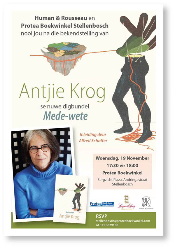 Boekbekendstelling: Antjie Krog se Mede-Wete, 19 November, Stellenbosch