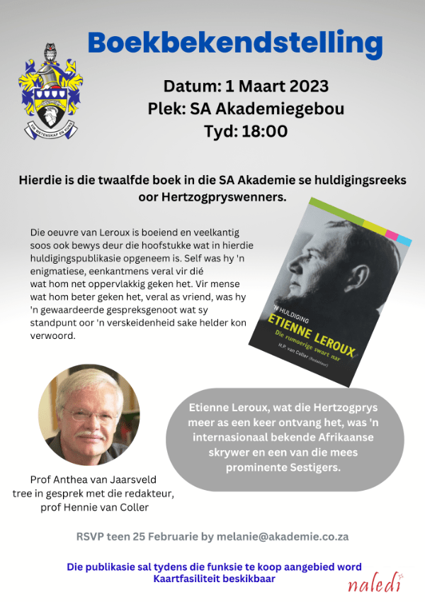 Boekbekendstelling: Etienne Leroux: Die rumoerige swart nar, ’n huldiging (redakteur: Hennie van Coller)