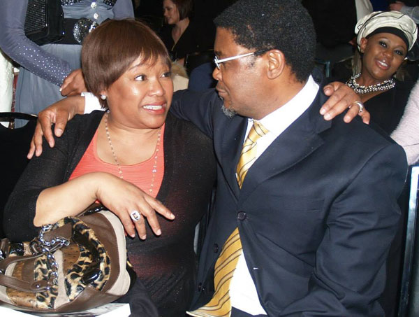 Zindzi Mandela gesels met 'n vriend. In die agtergrond is Batsetsana Kumalo.