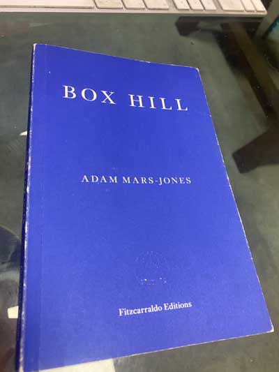 Op die eerste aand by my aan huis, vertel hy hoe druk hy aan Box Hill, ’n novelle deur Adam Mars-Jones, aan’t lees is. Ek verkondig dat ek gaande oor Mars-Jones se prosa is, maar hierdie boek wat in 2019 verskyn het, het ek nog nie gelees nie.