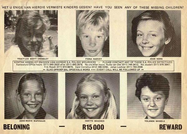 ʼn Polisieplakkaat wat versprei is in die tyd wat dié meisies verdwyn het. Dit is vandag steeds onduidelik wat van hulle geword het.