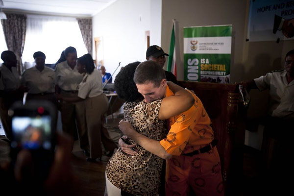 Oorlewendes van die Worcester-bomontploffing omhels een van die bomplanters, Stefaans Coetzee, by Pretoria Sentraal-gevangenis, waar hy vir die slagoffers vergifnis gevra het vir sy dade. Die ontmoeting is deur die Worcester Hoop-en-versoeningsproses en die Departement Korrektiewe Dienste gereël om oortreders en slagoffers te versoen.