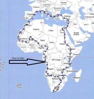 Ons vertrek op Sondag 30 Mei verder noord deur die DRK na Brazzaville in die Kongo. Vandaar reis ons deur Gaboen en Kameroen waar ons hopelik weer ’n geleentheid sal kry om van ons te laat hoor - dis nou te sê as ons ’n internetkafee kan raakloop wat goed funksioneer.
