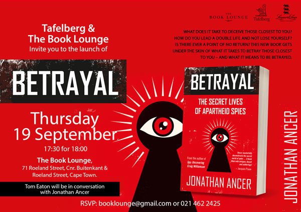 Book launch: Betrayal: The secret lives of apartheid spies by Jonathan Ancer