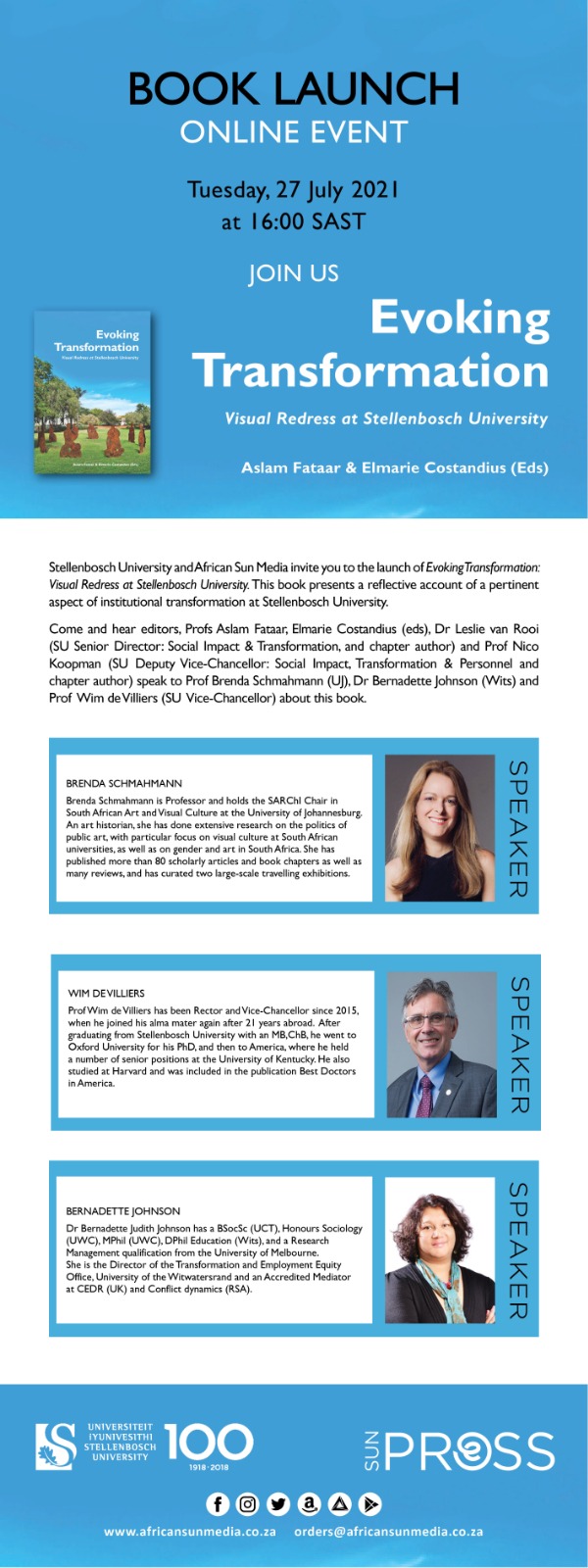 Book launch: Evoking transformation, edited by Aslam Fataar and Elmarie Constandius