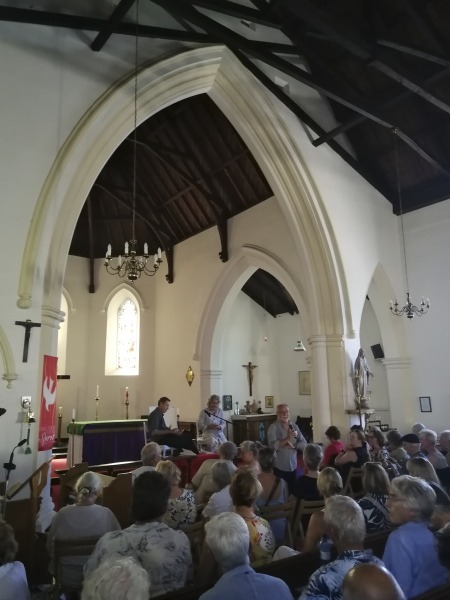 David Attwell introducing Peter Godwin and Shaun de Waal at the St Francis Church (picture: Karina Szczurek)