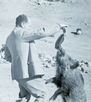 did a couple of days’ work there, then wrote new poems inspired by the experience. To start with, a postcard using an old image was the source for “Postcard from the Colonies”. I’m a great admirer of feisty Victorian explorer Mary Kingsley and her brilliant travel writing (her Travels in West Africa is a real treat) and I raided her work for “Beetle, Fish & Fetish” (her key reasons for exploring Africa, she said). An irresistible anecdote from Robert Byron’s The Road to Oxiana inspired “The Poor Wild Boar Who Went Too Far”.Though my poem refers to Byron’s archaeologist friend Herzfeld and his pet porcupine, and to a different boar, I was amused to stumble on this photo recently, and this one of Robert Byron with another porcine fellow.