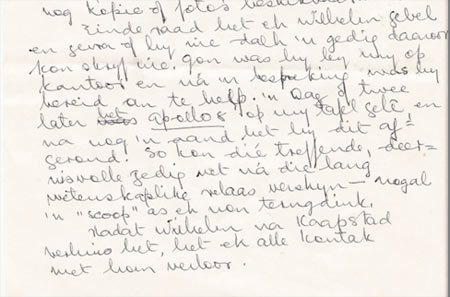En Wilhelm, binne ’n week het die dik brief in haar pragtige handskrif aangekom. Die brief het ek op die spesiale manier gekopieer deur my skandeermasjien te gebruik en sodoende is haar handgeskrewe brief onmiddellik op my rekenaar vasgelê en vir veilige bewaring in die hooflêer “Wilhelm” en die sublêer “Vriende Wilhelm Knobel” geplaas.