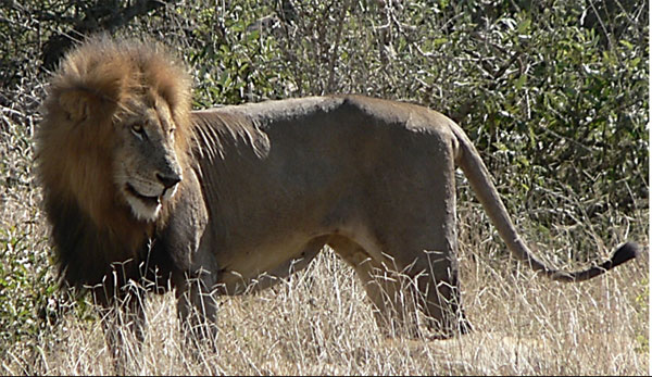 Die leeu bly die dier met die meeste aantrekkingskrag. Voor hierdie mannetjie tussen die droë gras lê die wyfie. Dit was paartyd en hulle het voortgegaan sonder dat die voertuie steur. Hierdie formidabele rooi-en-swart maanhaar se reputasie loop hom voorwaar vooruit.